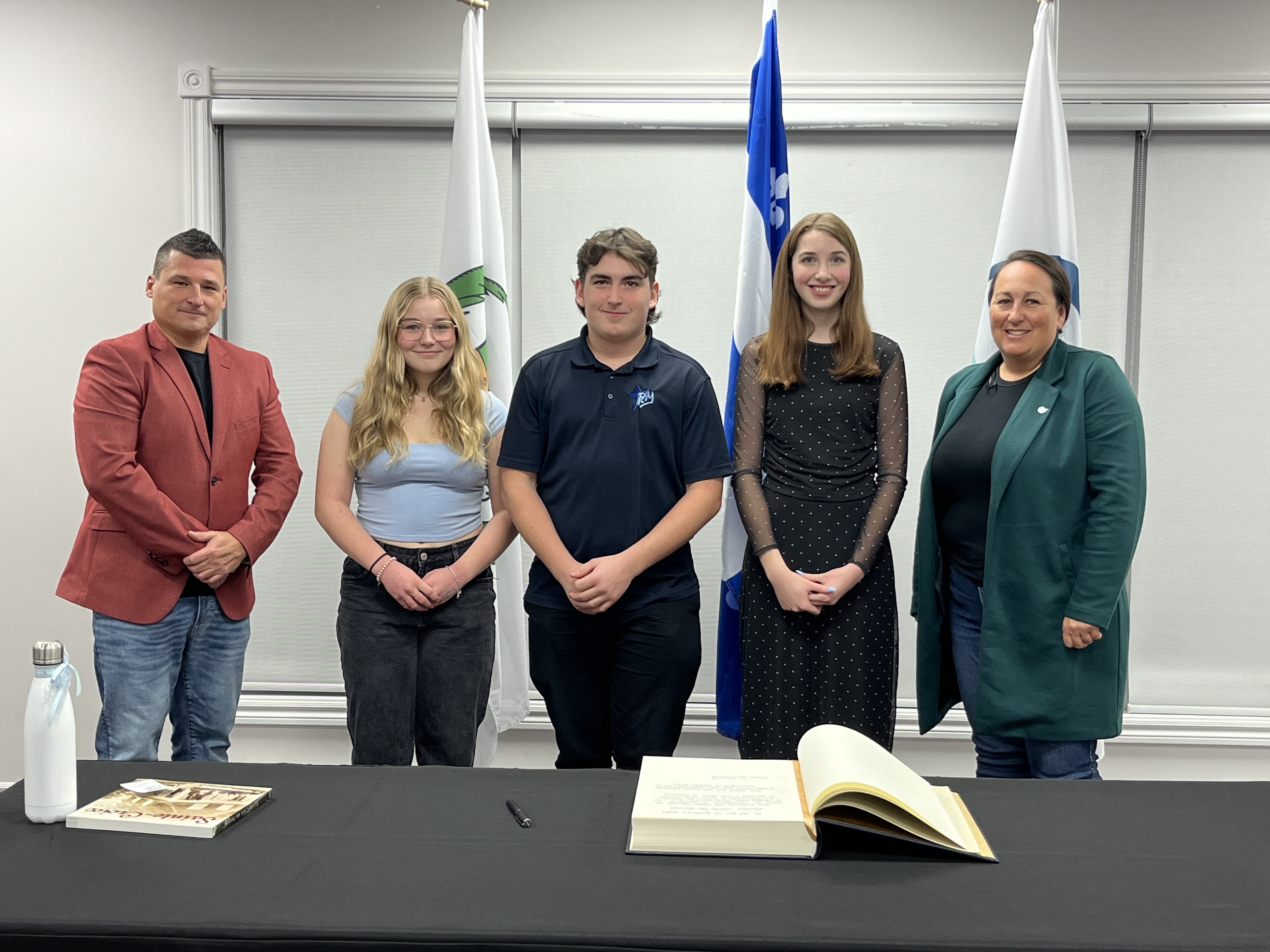 Le 26 novembre 2024, le maire, M. Stéphane Dion, accompagné de la mairesse suppléante, Mme Mélanie Picard, ont honoré 3 élèves de l'École secondaire Pamphile-Le May qui se sont illustrés dans le domaine de la musique.