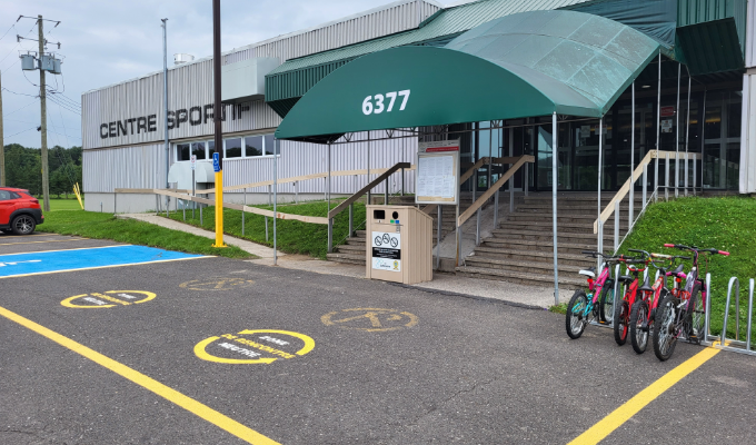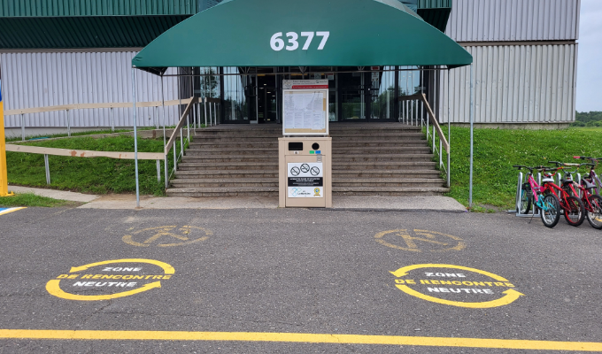 Situé devant le Centre Culturel et Sportif (6377 rue Garneau), cet espace délimité en jaune est sous surveillance d'une caméra qui enregistre 7 jours/7, 24 h/24.