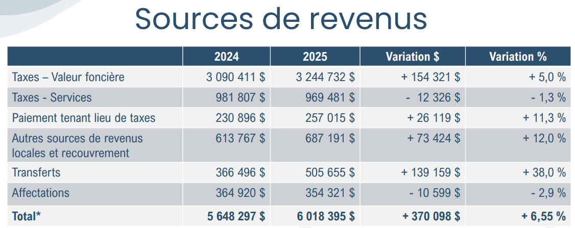Au terme d’un processus rigoureux, les membres du conseil municipal ont adopté à l’unanimité les prévisions budgétaires pour l’année 2025 lors de la séance extraordinaire du 17 décembre dernier. Il s’agit d’un budget équilibré comprenant des revenus et des dépenses totalisant 6 018 395 $.