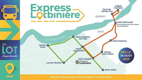 Dès la rentrée scolaire, les cégépiens de Sainte-Croix pourront étudier au Campus de Lotbinière en utilisant ce nouveau service de transport collectif régional Express Lotbinière.