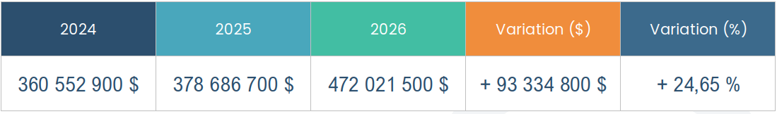 Pour plus d’information sur les prévisions budgétaires 2026, je vous invite à consulter la présentation complète sur la page des finances.