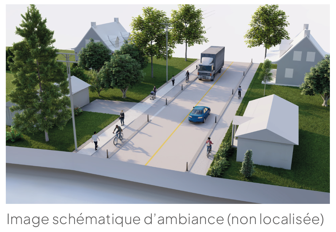 À titre d’exemples, plusieurs citoyens déplorent le fait que le trottoir sur le côté nord de la rue Principale est interrompu par endroits et est trop étroit pour que deux piétons puissent aisément se croiser. Aussi, nombreux sont ceux qui ont noté l’absence de corridor cyclable. À certains endroits, l’accotement est à peine de 0,1 mètre alors que la norme minimale est de 0,5 mètre et 1,5 mètre pour permettre la circulation cyclable.