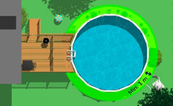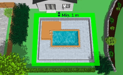 - Doit être implantée à au moins 1 m de la paroi d’une piscine creusée