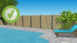 Lorsque l’enceinte est formée par une clôture à mailles de chaîne, les mailles doivent avoir une largeur maximale de 30 millimètres. Toutefois, si des lattes sont insérées dans les mailles, leur largeur peut être supérieure à 30 millimètres, mais elles ne peuvent pas permettre le passage d’un objet sphérique de plus de 30 millimètres de diamètre.