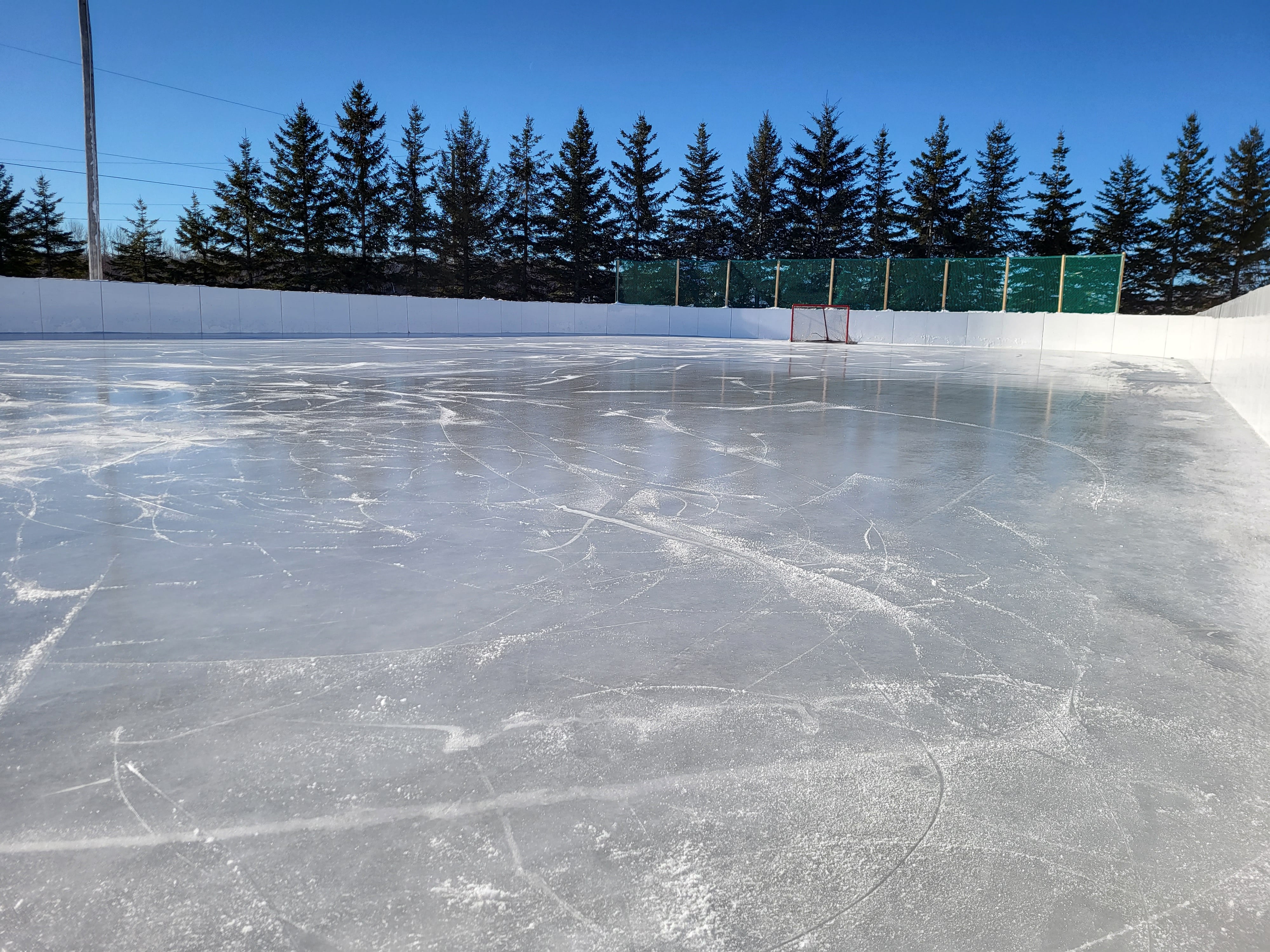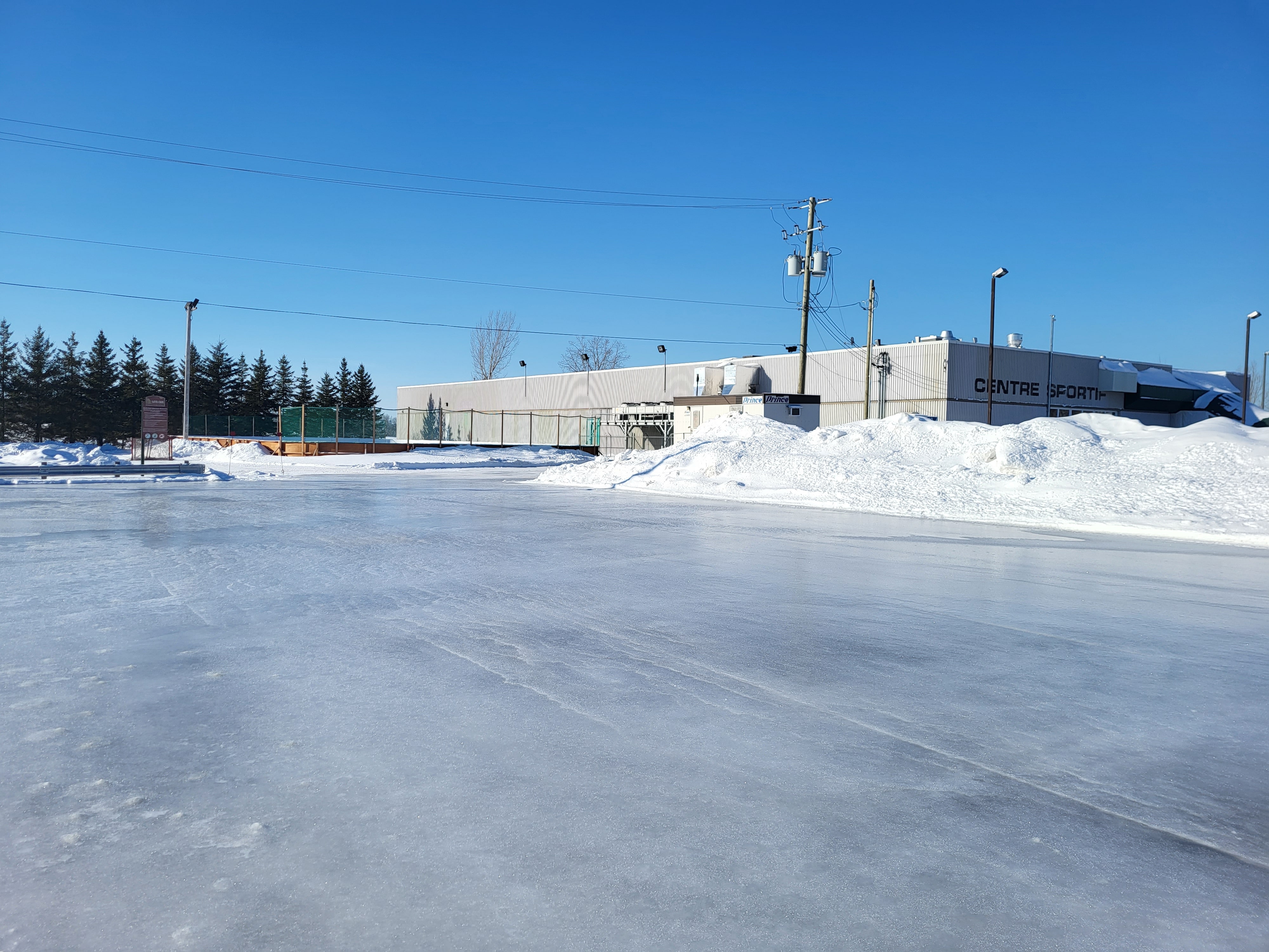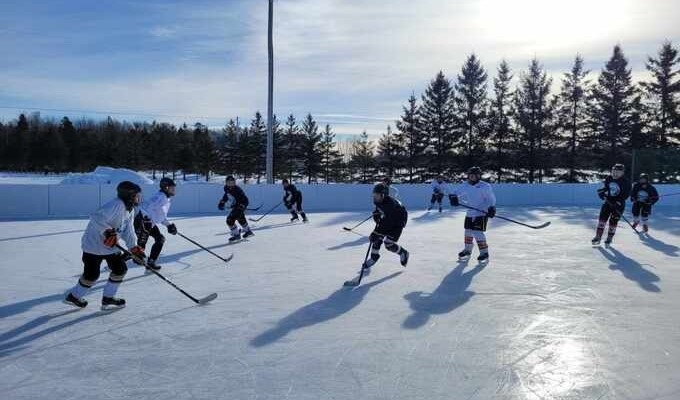 La patinoire avec des bandes est réservée à la pratique du hockey libre et celle au bout du stationnement de l’aréna aux activités de patinage libre.