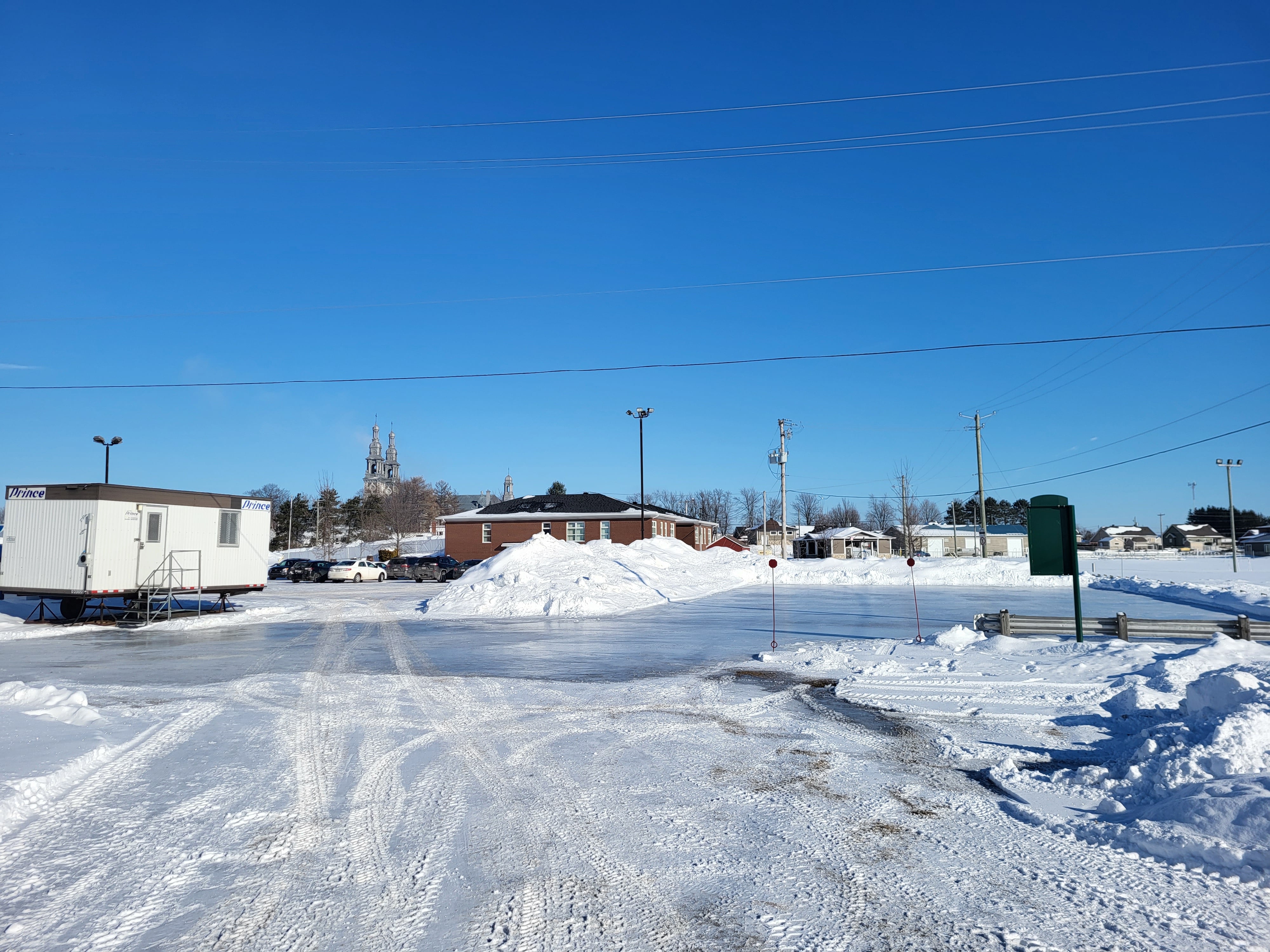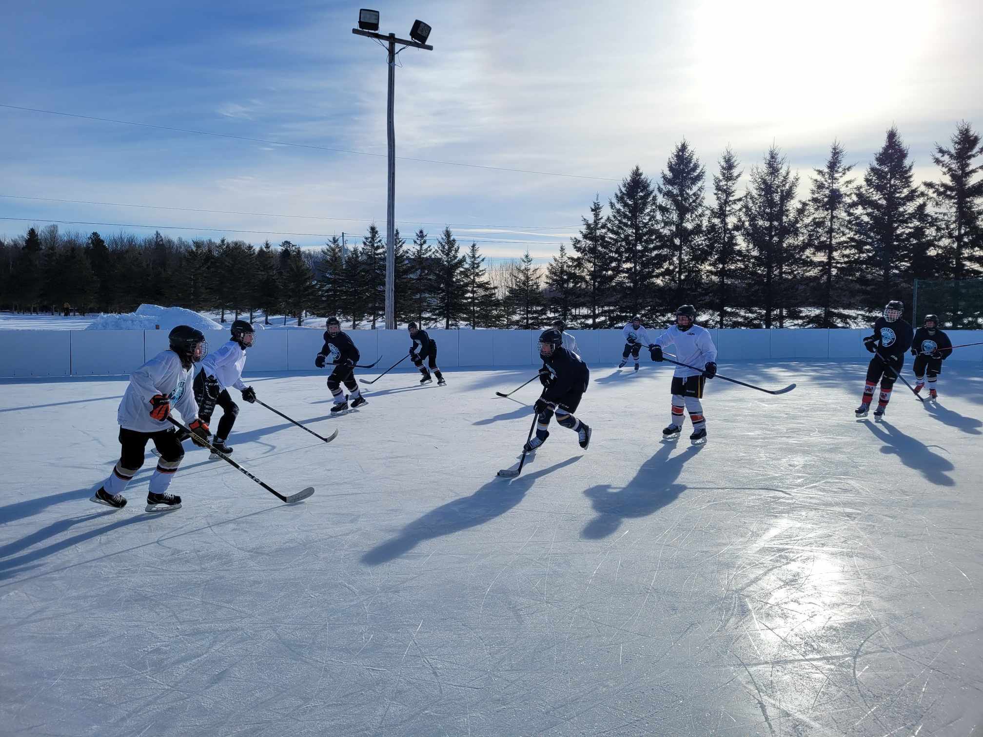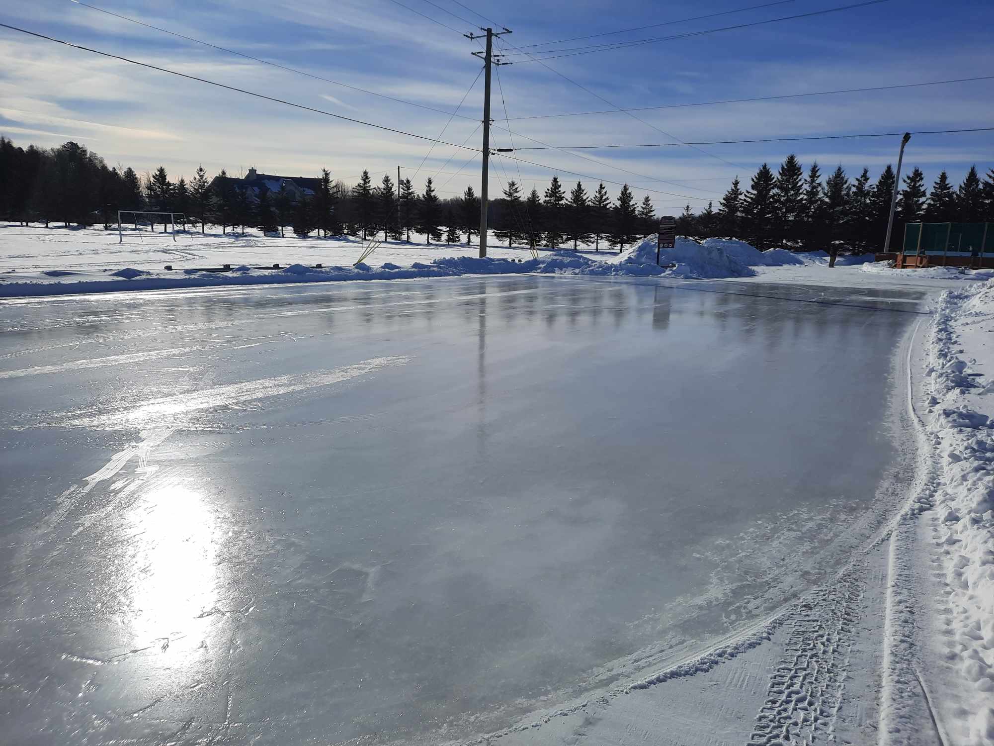 La patinoire avec des bandes est réservée à la pratique du hockey libre et celle au bout du stationnement de l’aréna aux activités de patinage libre.